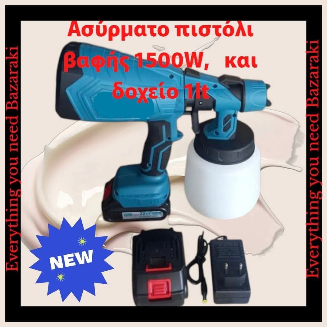 Ασύρματο πιστόλι βαφής 1500W, και δοχείο 1lt