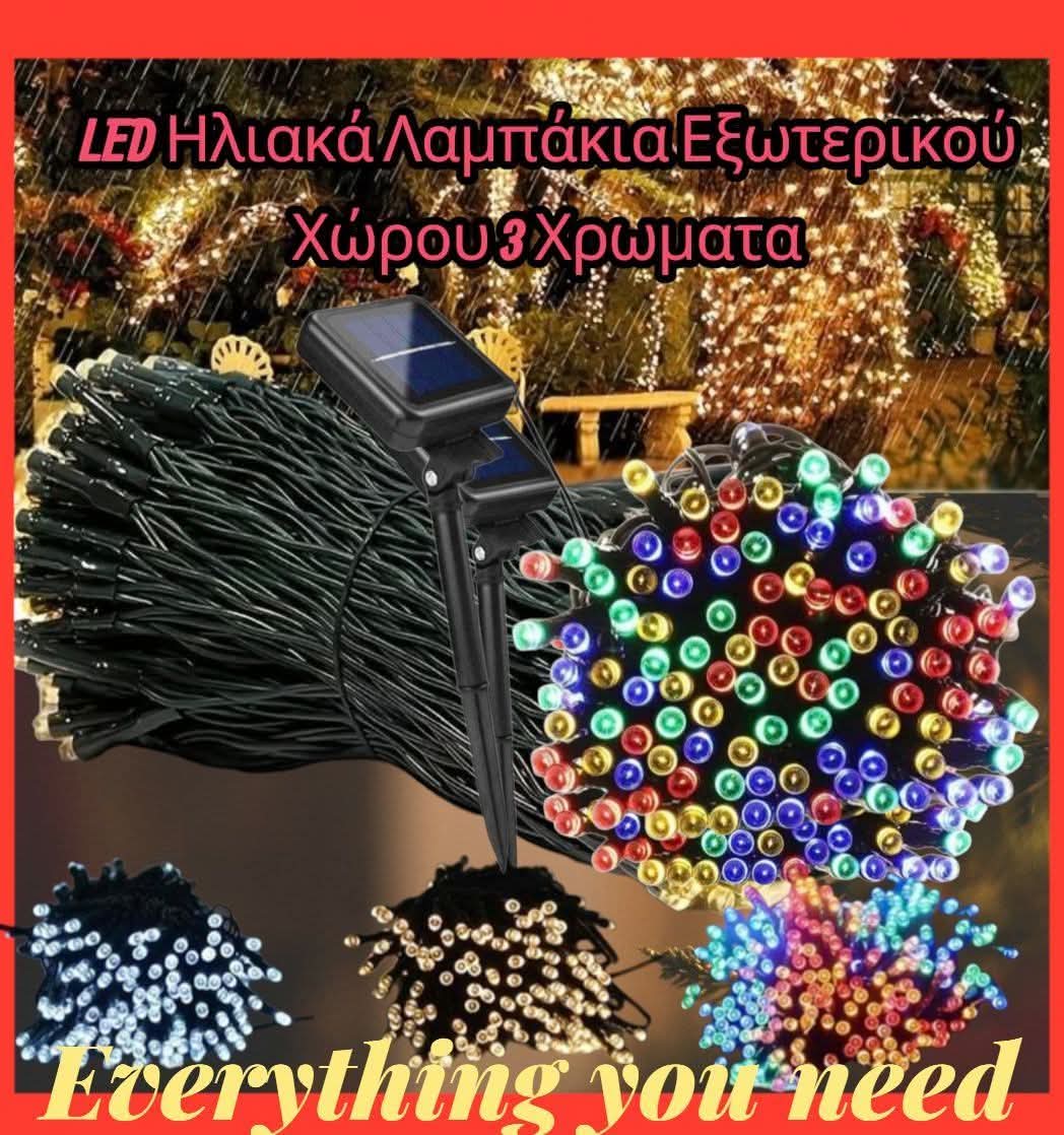 Ηλιακα Λαμπακια Εξωτερικου Χωρου Σε 3 Χρωματα 10m