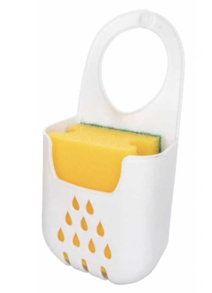 Πλαστική θήκη για σφουγγάρια. Πολύ πρακτική, με τρύπες για την αποστράγγιση του νερού. Ιδανική για νεροχύτες κουζίνας και μπάνιου. Εξοπλισμένη με γάντζο κλεισίματος. Περιλαμβάνει σφουγγάρι.