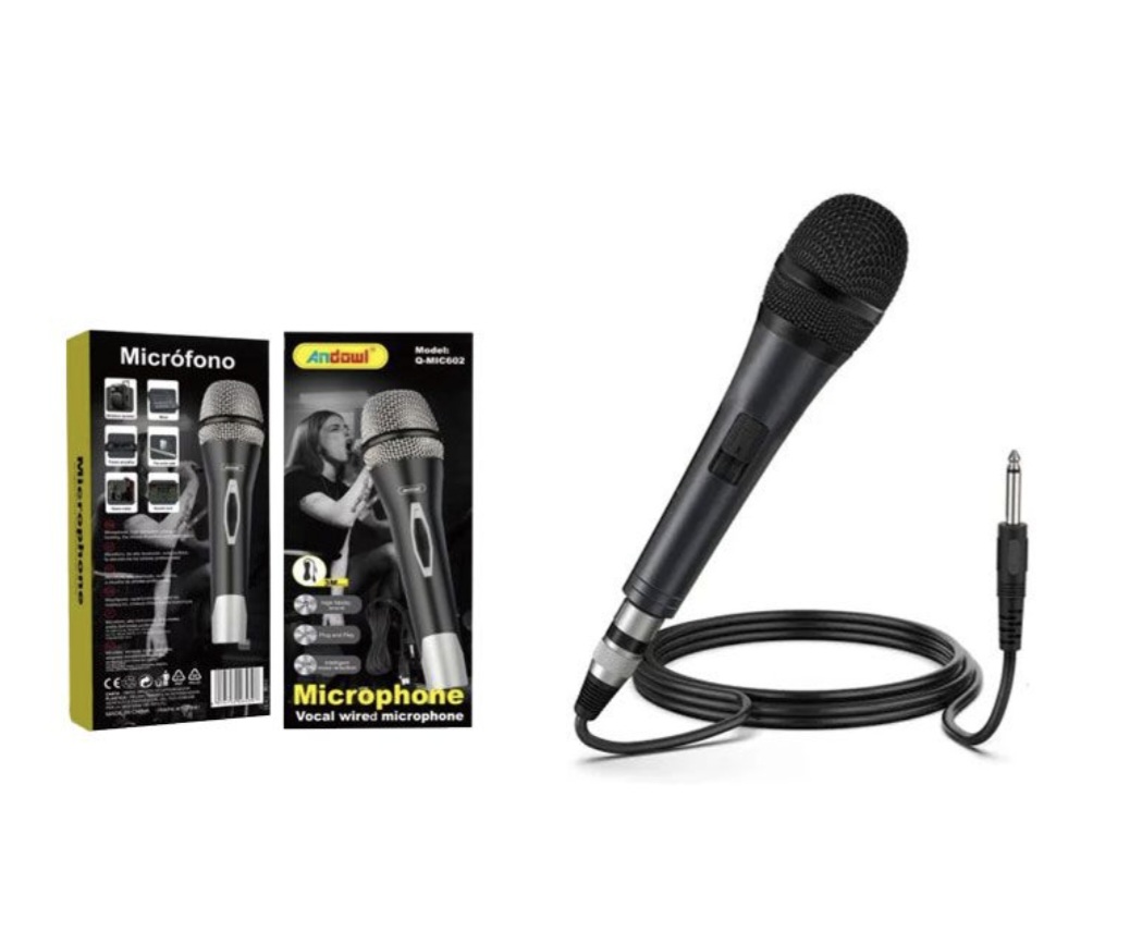 Ενσύρματο μικρόφωνο χειρός Andowl Q-MIC602 για καραόκε εξαιρετικής ποιότητας. Υψηλής ανάλυσης αντι-ουρλιαχτό.