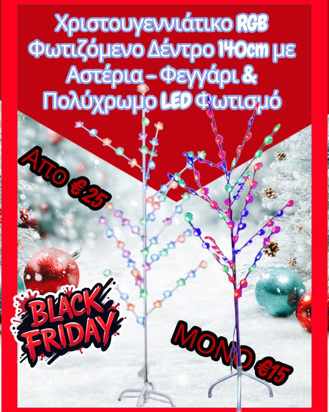 Χριστουγεννιάτικο RGB Φωτιζόμενο Δέντρο 140cm με Αστέρια – Φεγγάρι & Πολύχρωμο LED Φωτισμό