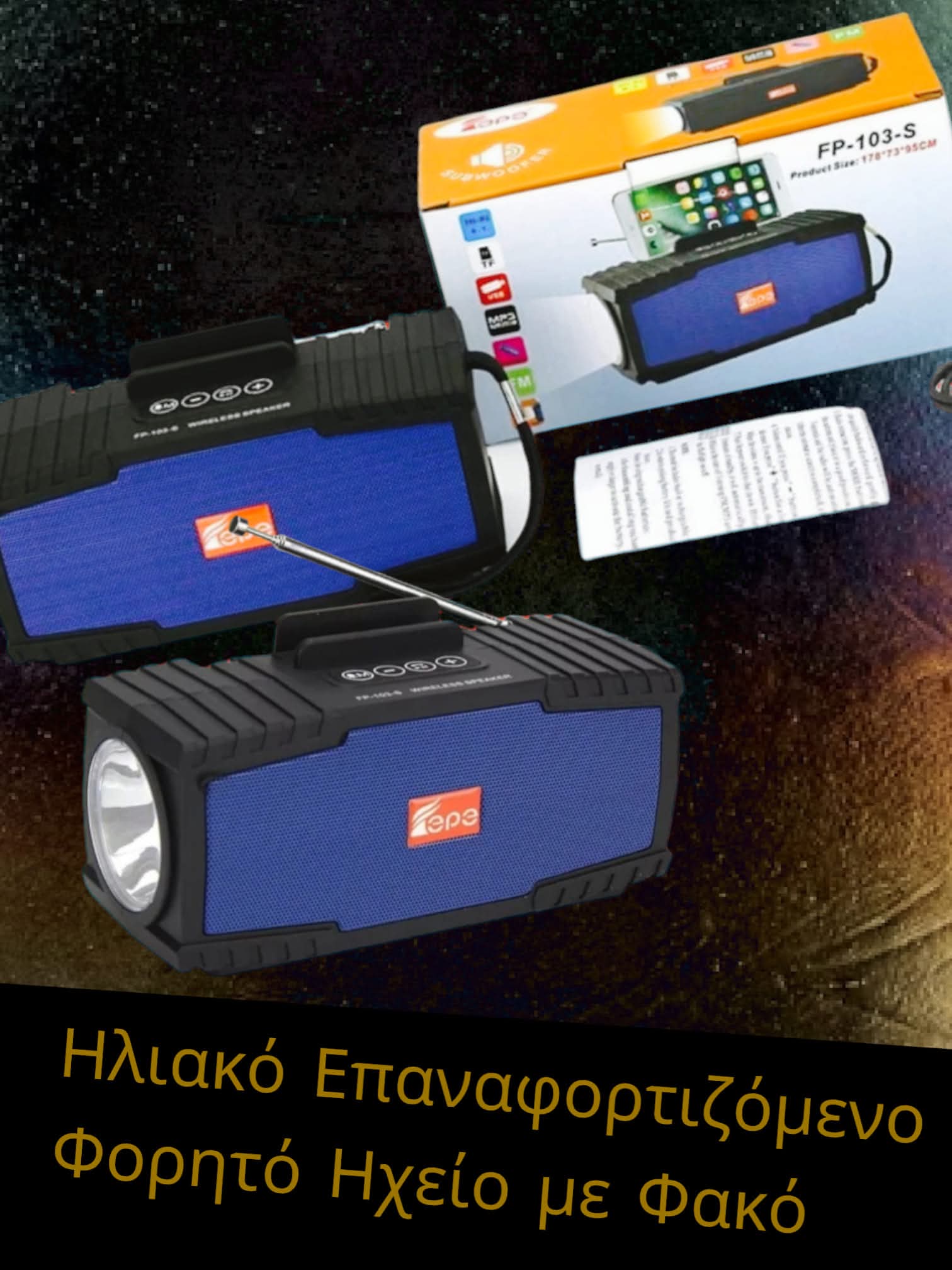 Solar Ηχειο Επαναφορτιζομενο φοριτο ηχειο με φακο